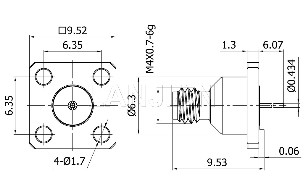 商品描述:1.0mm straight jack flange connector,110GHz